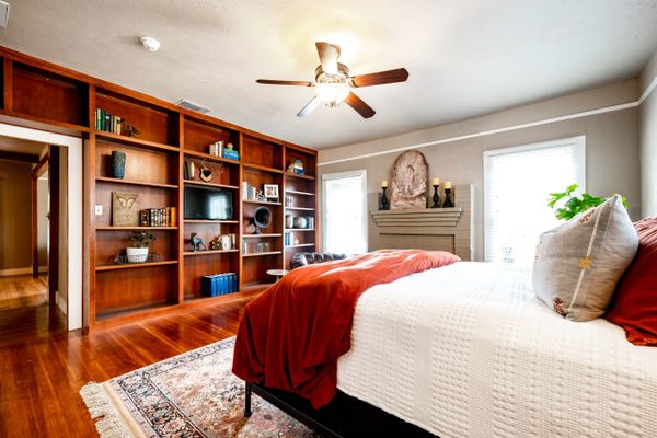 The large rocks on the porch were saved from the original home and reused during the remodel. As well, the rock stairs on which you exit at the back were retrieved from under the house during renovation. In the back yard is the original carriage house along with the Granbury Bus Station dating from the 1950s which was “saved” from demolition by Linda Preston. The beautiful bar in the dining room originally came from the Andy Aston Saloon on the Granbury Square in the early 1900's. It was much later salvaged by Linda for her "Almost Heaven" store that she operated on the square for 33 years. After closing her store, she moved the bar to this home and it was a perfect fit! Linda was presented with the colorful and informative history of this home from a longtime friend and decedent of the family, Cody Martin Jr.